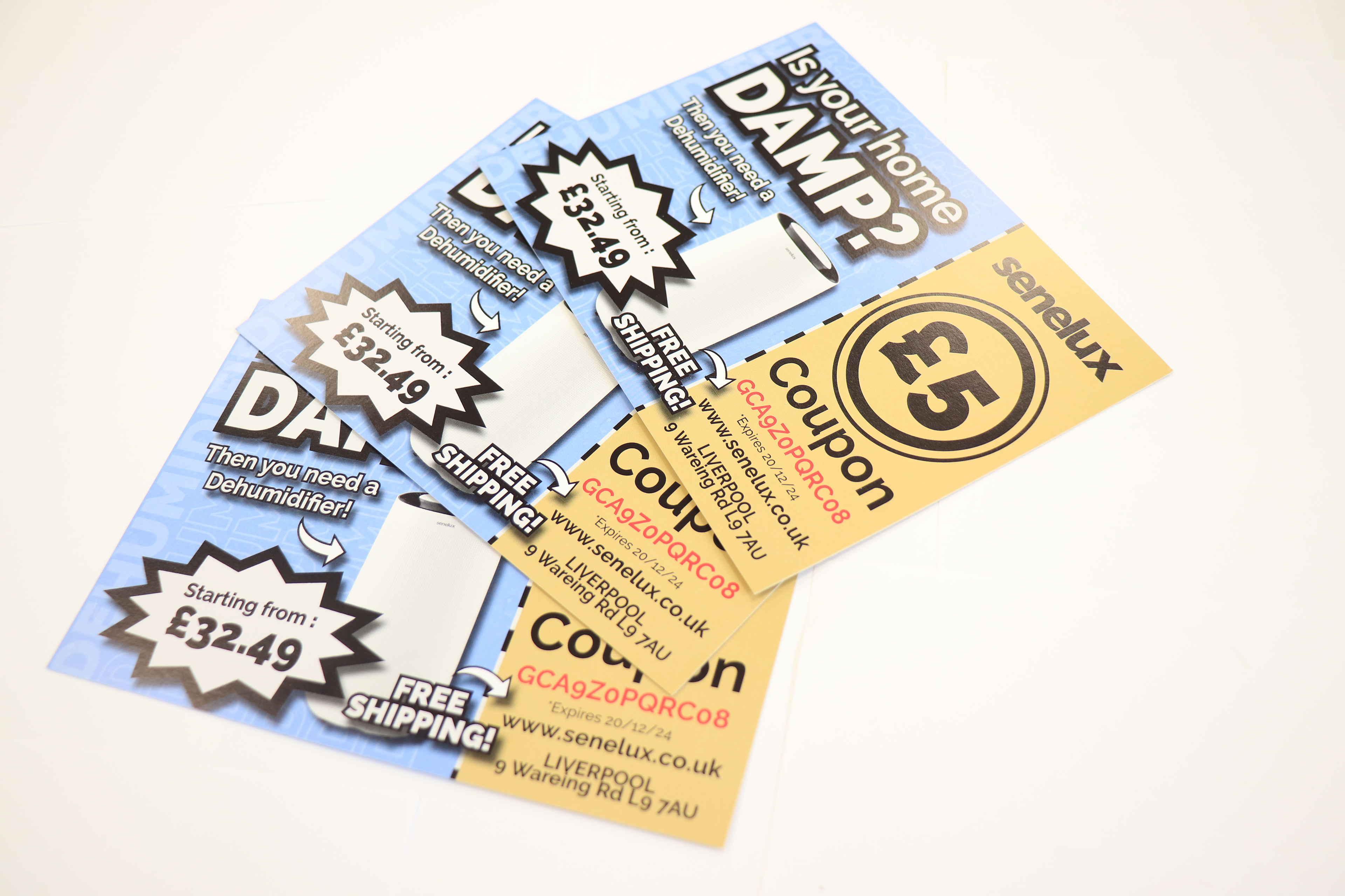 Leaflets that are sent out through Royal Mails door to door service. These double sided leaflets feature a gold coupon to replicate a golden ticket feeling when these come through someone's door that has an exclusive discount code that can be redeemed on the Senelux website to get £5.00 off an order.